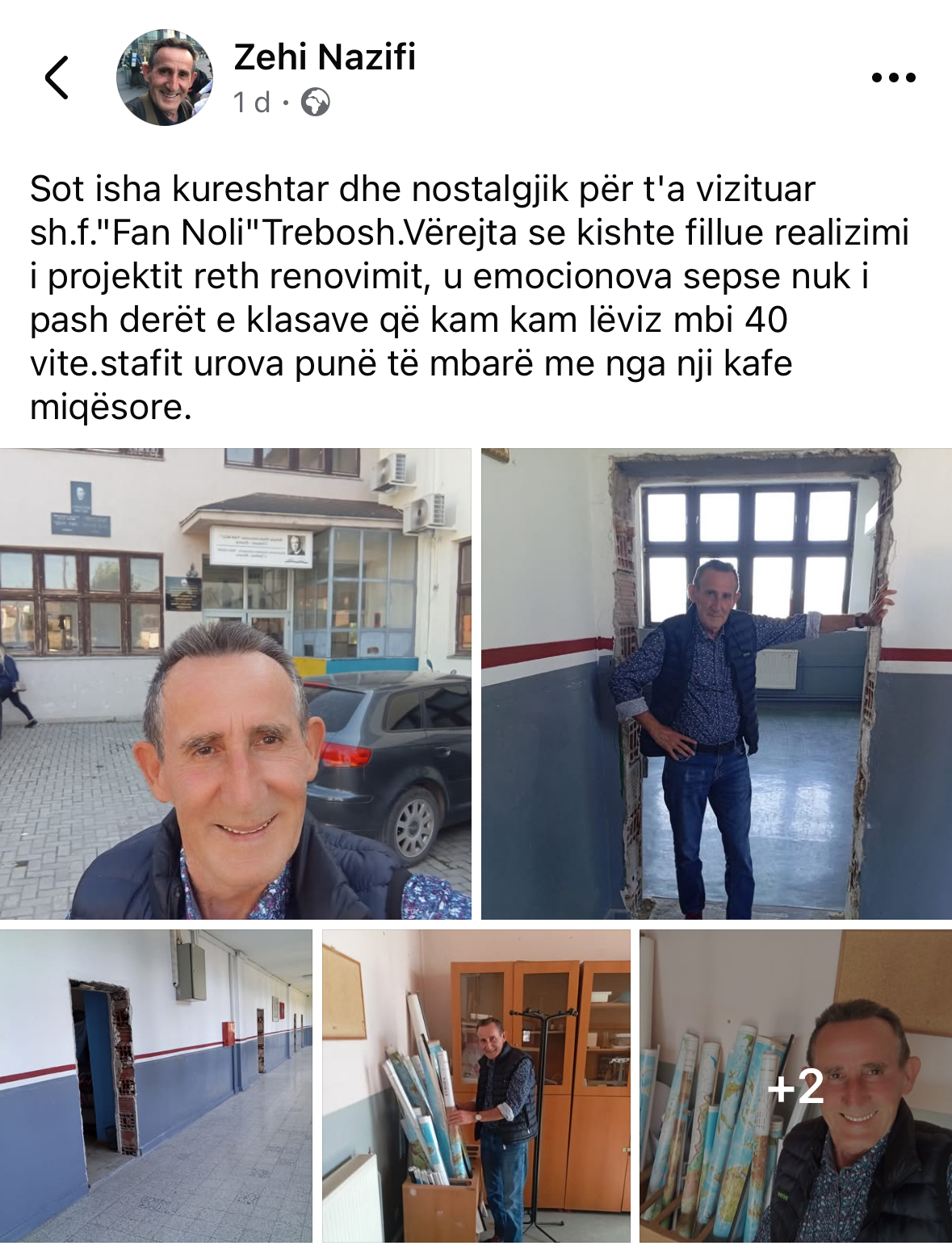Sot, i shtyrë nga kureshtja dhe nostalgjia, vizitova shkollën fillore “Fan Noli” në Trebosh. Me emocion të veçantë pashë se ka filluar realizimi i projektit për renovimin e këtij institucioni, ku mbi 40 vite më parë kam kaluar korridoret dhe klasat e saj.